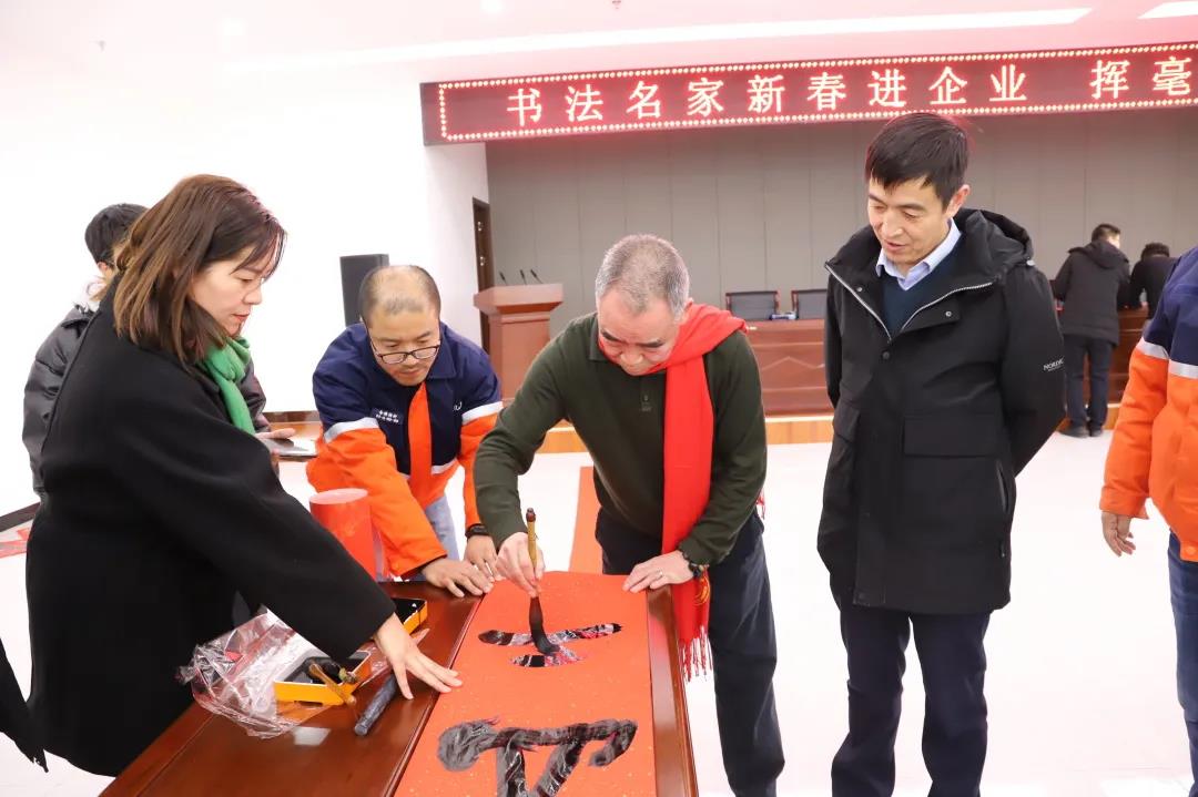 1月26日下午,蘭州新區(qū)美術(shù)家、書法家協(xié)會(huì)主席王先銀,副主席王安祥(2021年中國(guó)共產(chǎn)黨成立100周年獲得人民藝術(shù)家榮譽(yù)稱號(hào)),秘書長(zhǎng)魏世全等6名書法名家赴石化集團(tuán)同集團(tuán)黨委副書記、總經(jīng)理姜錦,工會(huì)主席劉東斌,副總經(jīng)理李剛,總工程師葉得強(qiáng)一道為公司員工送“?!?、送春聯(lián),提前送上了新春的祝福與問候。