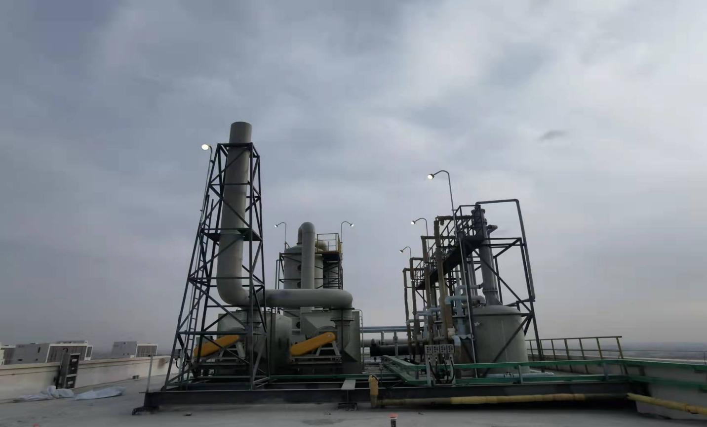 甘肅朗瑪旗云科技有限公司醫(yī)藥農(nóng)藥新材料中間體生產(chǎn)車間是化藥原料生產(chǎn)車間,車間生產(chǎn)過程中揮發(fā)的有機溶劑和物料粉塵對環(huán)境有較大的污染,根據(jù)環(huán)保部門要求,此類氣體需要收集后經(jīng)過有效處理才能排放。因此車間廢氣處理工作是重中之重,為確保未投產(chǎn)車間廢氣處理工程順利實現(xiàn)既定目標,項目部進行細致周密的施工準備。施工期間,項目部技術人員、業(yè)主在現(xiàn)場加強協(xié)調、監(jiān)督和指導工作,建筑工人們冒著嚴寒加緊作業(yè),確保工程進度,為項目順利完成進一步創(chuàng)造了條件。