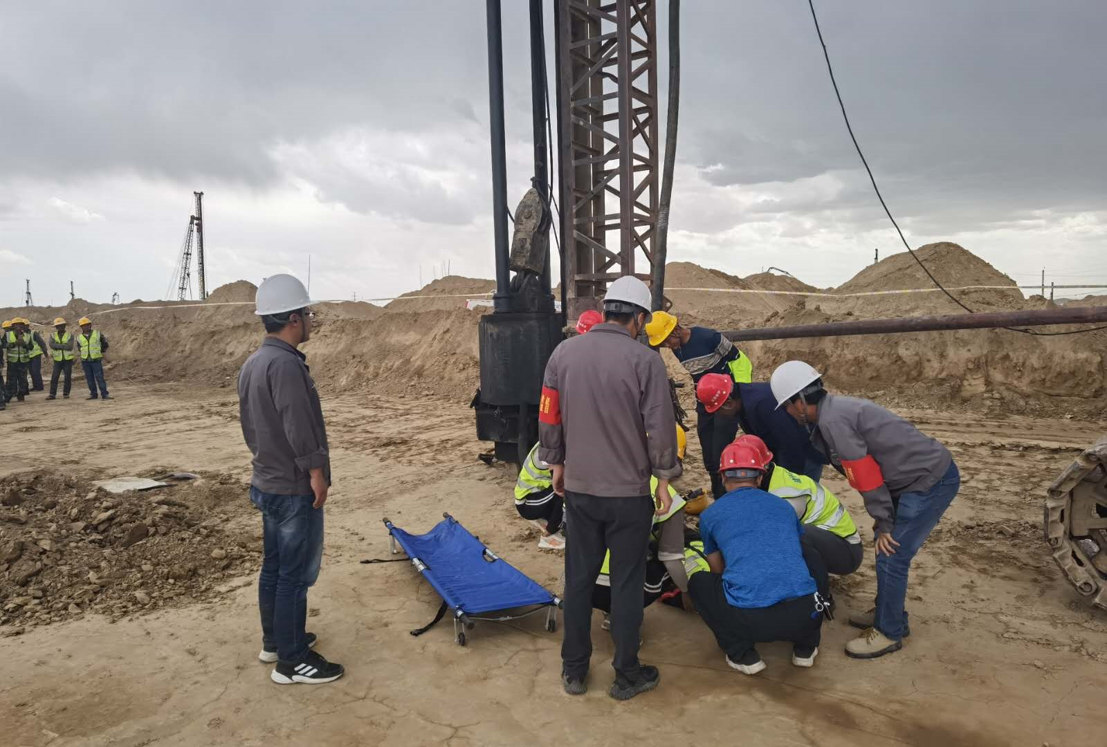 為進(jìn)一步提高全體項(xiàng)目參建員工安全意識(shí),增強(qiáng)應(yīng)對(duì)突發(fā)事件的處置能力,6月24日,化學(xué)工程公司在專(zhuān)精特新化工科技產(chǎn)業(yè)園項(xiàng)目B區(qū)施工現(xiàn)場(chǎng),開(kāi)展了擠密樁樁機(jī)作業(yè)安全事故應(yīng)急救援演練活動(dòng),化學(xué)工程公司相關(guān)負(fù)責(zé)人、工程技術(shù)部、HSE管理部、勞務(wù)分包單位共80余人參加了此次演練。