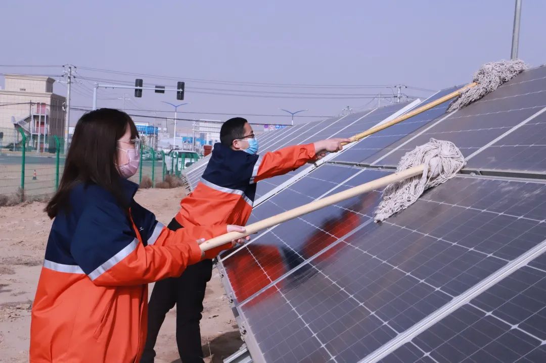 受降雪和沙塵天氣影響,石化勝利光伏電站光伏板表面積塵較多,為提高發(fā)電率,保障光伏發(fā)電系統(tǒng)安全、高效運行,專精特新公司黨支部組織黨員干部職工開展為期2天的“擦亮光伏板,建功新能源”主題黨日活動。